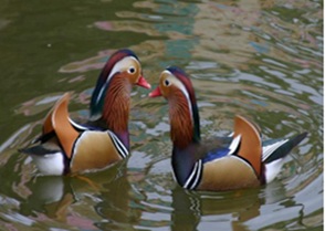 [Imagen 4: Pato mandarín (Aix galericulata). Fuente: Anexo X de la Memoria del Plan de Fomento y Gestión de la Biodiversidad del Ayuntamiento de Madrid: Lista de especies invasoras presentes en el Municipio de Madrid y sus posibles medidas de control]