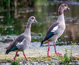 [Imagen 3: Ganso del Nilo (Alopochen aegyptiaca). Fuente: Anexo X de la Memoria del Plan de Fomento y Gestión de la Biodiversidad del Ayuntamiento de Madrid: Lista de especies invasoras presentes en el Municipio de Madrid y sus posibles medidas de control]