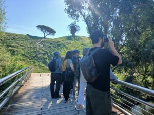 [Imagen 2. El grupo observando el nido de un pico picapinos. Fuente: Madrid Ambiental]