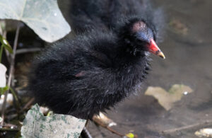 [Imagen 4. Polluelo de gallineta común (Gallinula chloropus). Fuente: Jon J. Laysell. Creative Commons – Algunos derechos reservados: https://creativecommons.org/licenses/by-nc/4.0/]