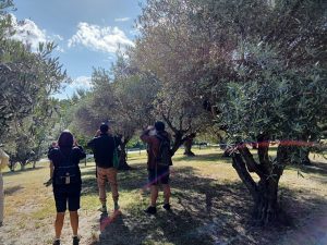 [Imagen 3: Observando abubillas entre los olivos. Fuente: Madrid Ambiental.]