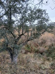 [Imagen 4. Una gran encina (Quercus ilex subs. ballota) en el Monte de El Pardo junto a la Senda Fluvial del río Manzanares. Fuente: Madrid Ambiental.]