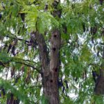 Además, hemos podido disfrutar del largo posado que ha ejecutado encaramado al tronco de un pino, este gracioso carpintero hacedor de viviendas para las múltiples aves que habitan el parque. De hecho, en la misma acacia hemos podido comprobar la cantidad de nidos que realiza para uso y disfrute de otros compañeros alados.
