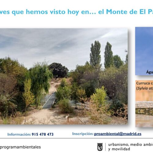 Descripción del itinerario ornitológico llevado a cabo por el Porgrama Madrid Ambiental en el Monte del Pardo el sábado, 11 de octubre. Contiene el nombre de las especies observadas, características propias de cada especie que nos ayudan a identificarlas, descripción del entorno y de algunos comportamientos.