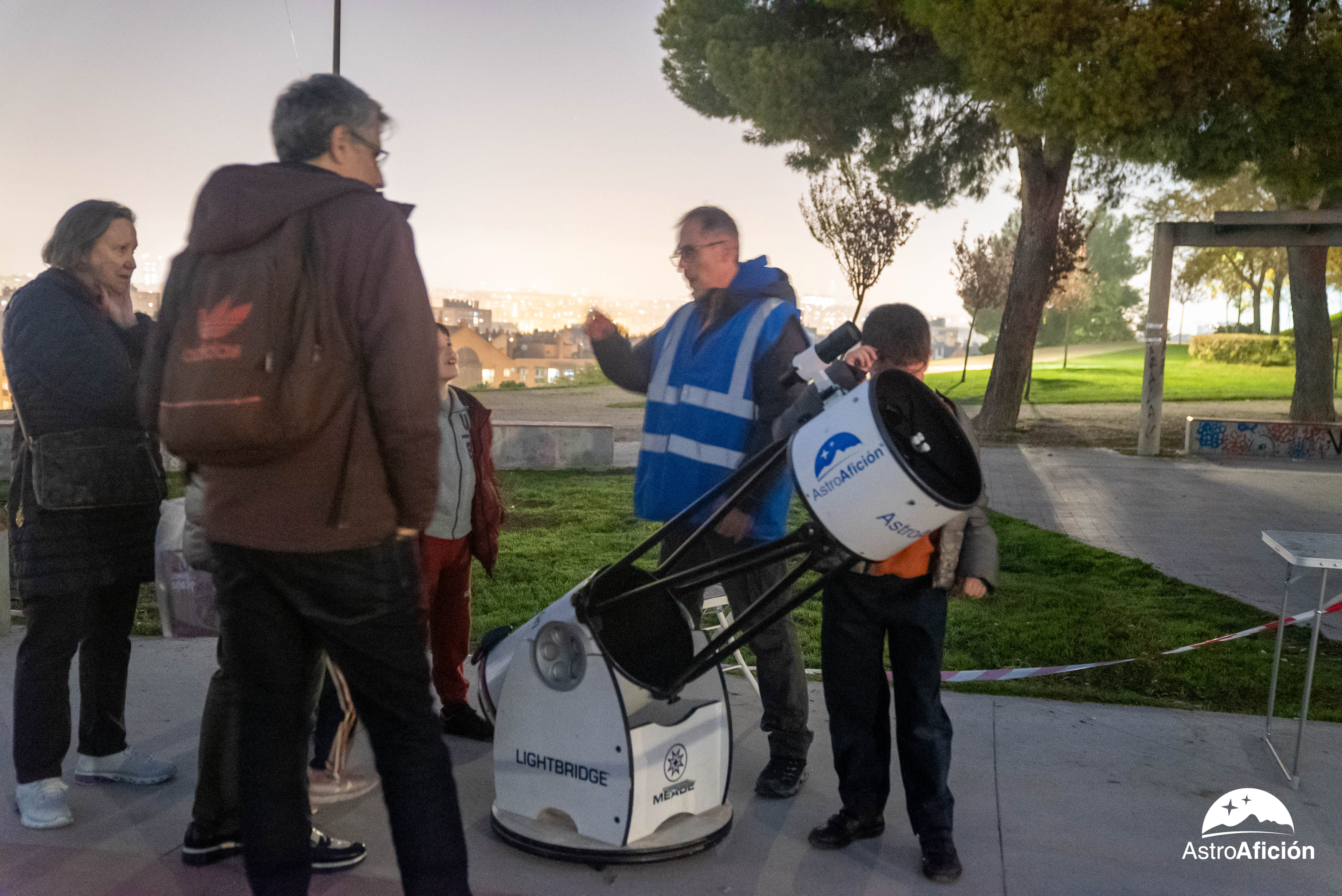El taller de observación astronómica se celebrará entre los día 29 de septiembre y 5 de octubre, en el Mirador del Cerro del Tío Pío. A través de las lentes de ocho telescopios de gran apertura y siguiendo las indicaciones de un astrónomo especializado en divulgación científica, se organizarán grupos reducidos con un máximo de 20 personas por telescopio las personas, quienes aprenderán a reconocer las estrellas, la luna y los planetas que sean visibles desde el cielo madrileño. De esta forma, se logra vivir una experiencia personalizada, sin necesidad de tener conocimientos previos.