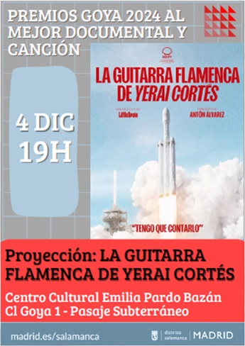 Antón Álvarez, conocido como C. Tangana, dirige esta película documental ganador de dos Premios Goya sobre uno de los artistas más prometedores del flamenco: Yerai Cortés. La cita: el 4 de diciembre a las 19 h.