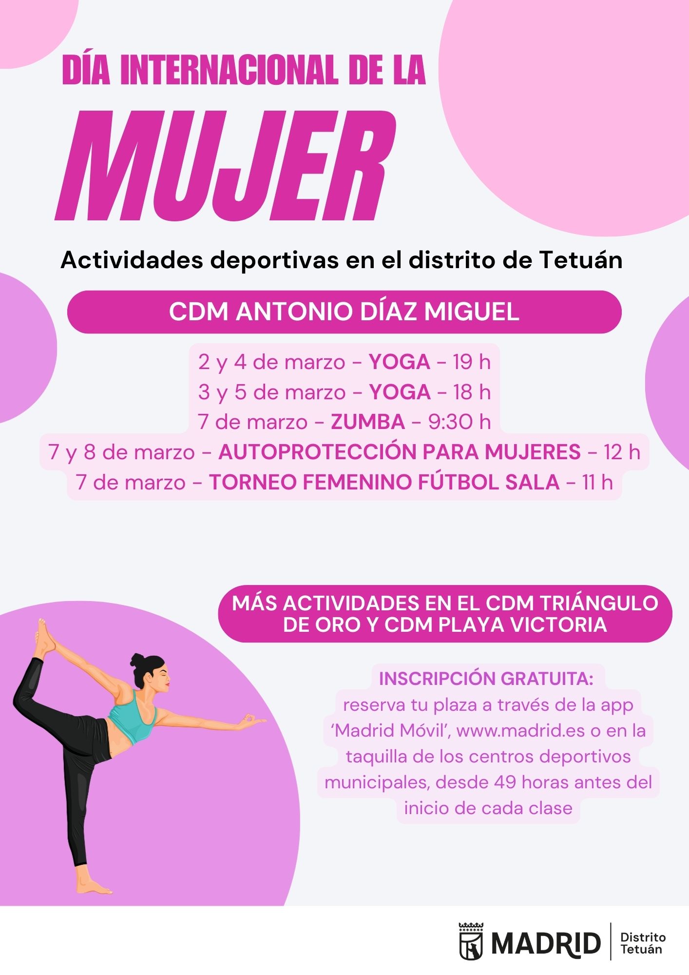 El distrito de Tetuán ha querido poner el foco durante este mes de marzo en las mujeres. Esta misma semana han comenzado a celebrarse distintas actividades culturales, deportivas… que continuarán durante este fin de semana y a lo largo del mes de marzo, destacando como jornada especial el sábado 7, previa al 8-M, Día Internacional de la Mujer.