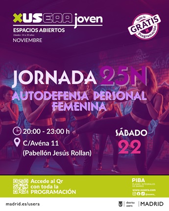 El programa de ocio XUsera también se suma a la conmemoración con varias actividades para niños y jóvenes, destinado especialmente si tienes entre 14 a 30 años. El viernes 21 abre con una sesión musical en el Fem DJ Fest, par aprender a pinchar y disfrutar de buena música, de 17 a 20 horas en la plaza del Mercado (calle de Amparo Usera, 46). Las propuestas se completan el sábado 22 de noviembre, donde se han agendado las Jornadas 25N: Autodefensa femenina, un taller de nuevas tecnologías y feminismo, a las 20 horas en Centro Deportivo Municipal Orcasitas.