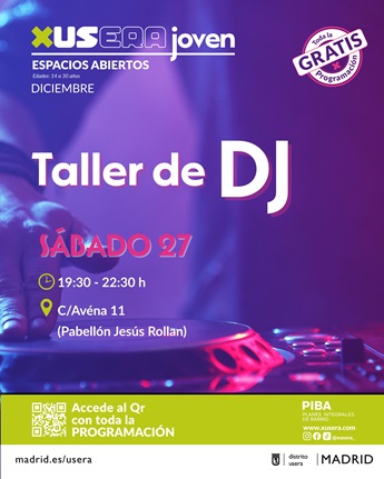La agenda juvenil de XUsera se extiende hasta enero, y el día 3 puedes pasarte por el taller de producción musical que se ha organizado en los CC Cánovas del castillo y Meseta de Orcasitas. Todas las propuestas son gratuitas y abiertas.
