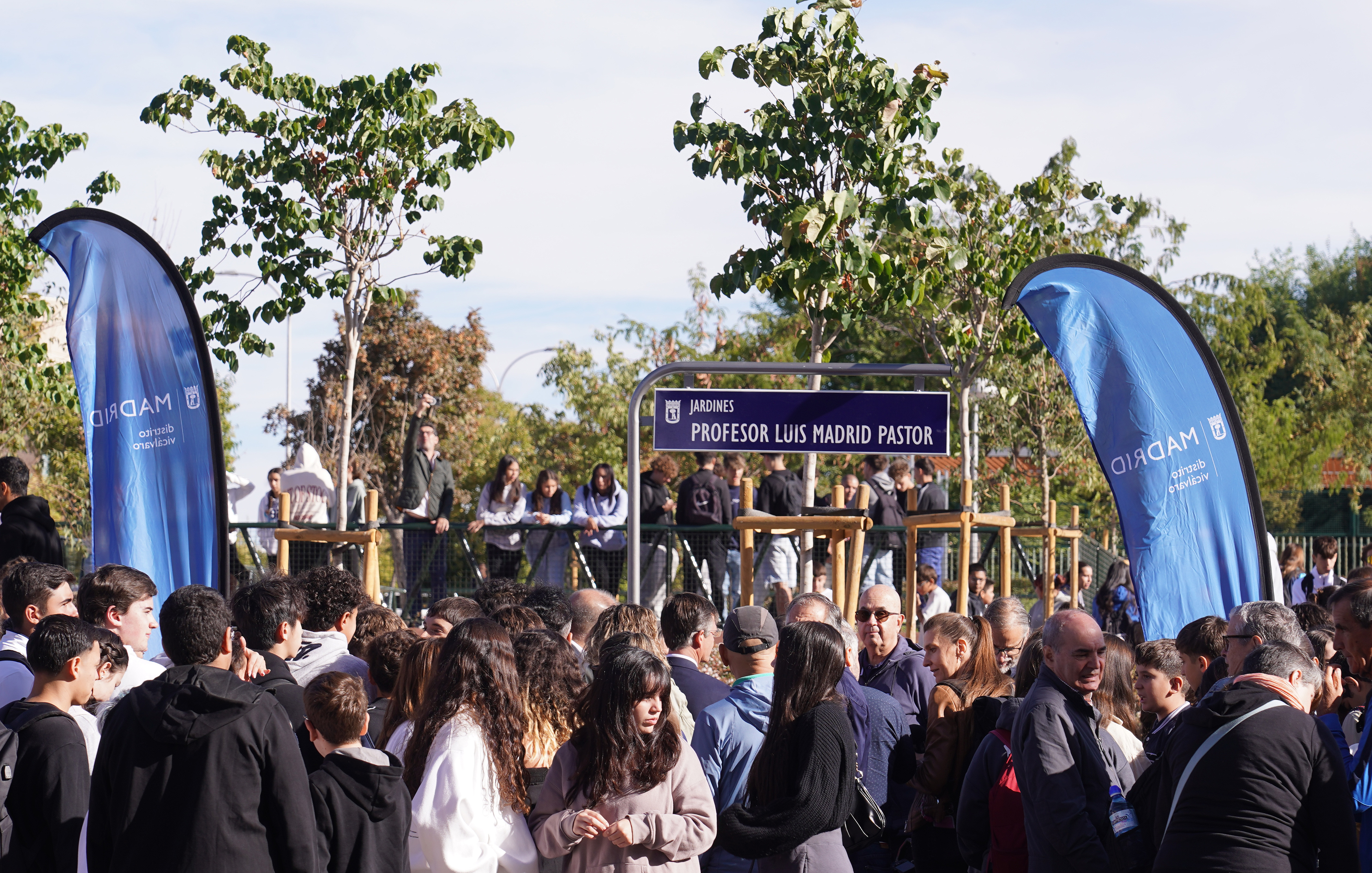 Ahora, en su nombre el parque de Valdebernardo Norte (situado entre el colegio público Valdebernardo y el instituto, entre la calle del Tren de Arganda y el bulevar de Indalecio Prieto) se convierte en los Jardines del Profesor Luis Madrid Pastor. Un espacio que no solo se ha renovado para ser más moderno, accesible y sostenible, sino que también se ha llenado de memoria.