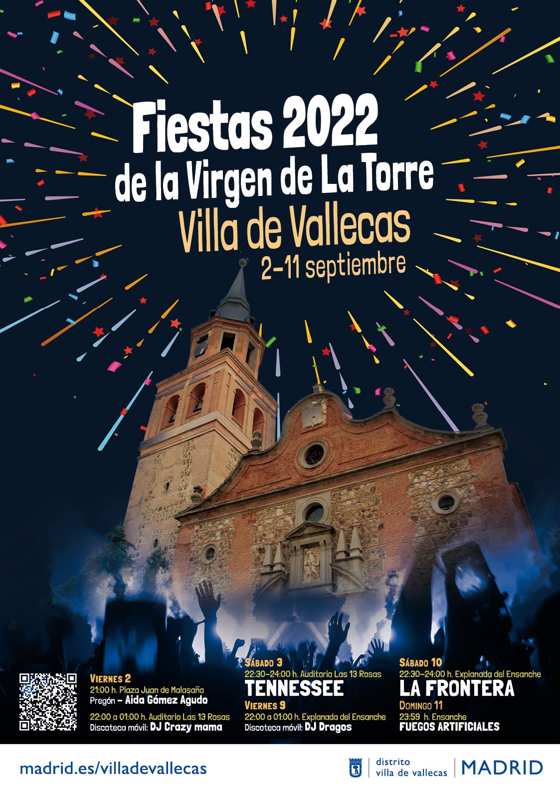 El día 4 de septiembre, desde las 12:00 hasta las 19:30h se celebrará la tradicional romería en honor a la patrona del distrito, la Virgen de la Torre. Esta romería tiene la particularidad de celebrarse dos veces: en mayo, con la ‘subida’ de la imagen desde San Pedro Ad Víncula hasta su ermita y, ahora en septiembre, realizando una nueva romería con la ‘bajada’ de la imagen desde la Ermita hasta San Pedro Ad Víncula. Y, como toda romería que se precie, esta celebración cuenta con misa, verbena en la pradera que hay junto a la ermita, orquesta… y ganas de pasarlo bien de los vallecanos de pro.