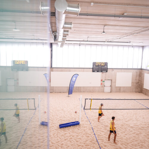 El espacio también cuenta con vestuarios, marcadores electrónicos en las dos pistas interiores y una zona elevada acristalada desde la que el público puede ver los partidos. Todo esto hace que pueda ser utilizada como sede de partidos de Liga Nacional de Vóley playa, que esta temporada 2024-2025 ya se han celebrado entre sus paredes.