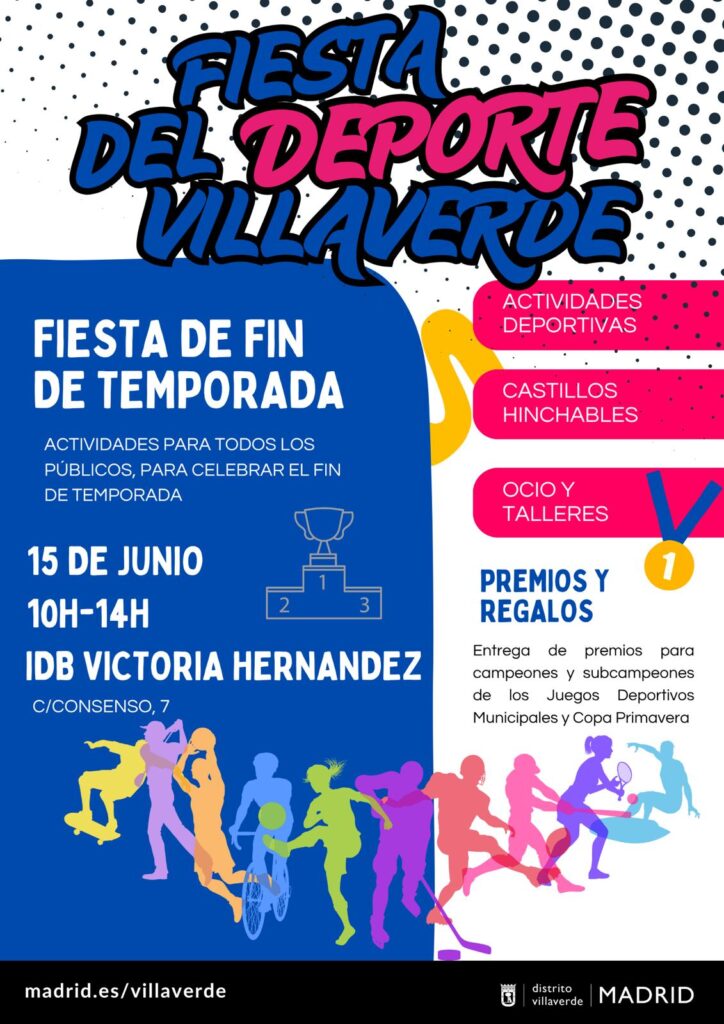 Después de un año en el que el deporte ha sido un protagonista destacado de Villaverde, toca celebrar el fin de curso y que mejor manera para festejar el cierre de la temporada que con la Fiesta del Deporte, con una jornada llena de diversión, deporte y lo más importante, en comunidad.