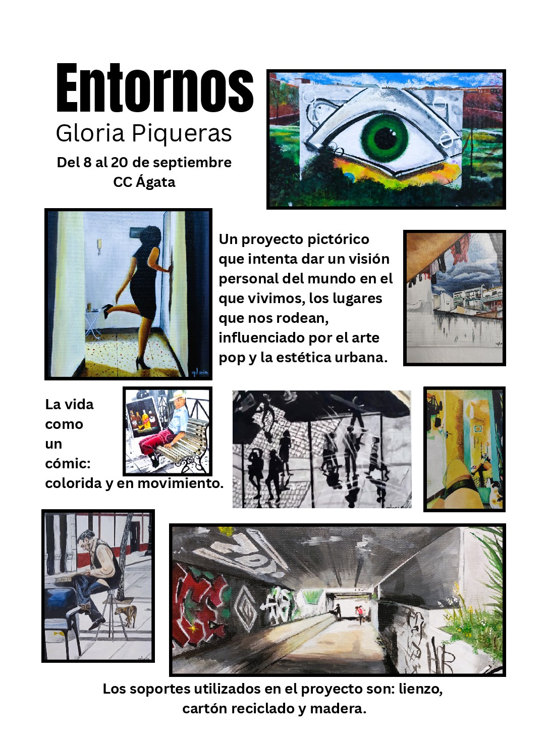 La vida como un cómic. Esta es la idea que Gloria Piqueras presenta en un proyecto pictórico que intenta dar una visión personal del mundo en el que vivimos, los lugares que nos rodean, influenciado por el arte pop y la estética urbana.