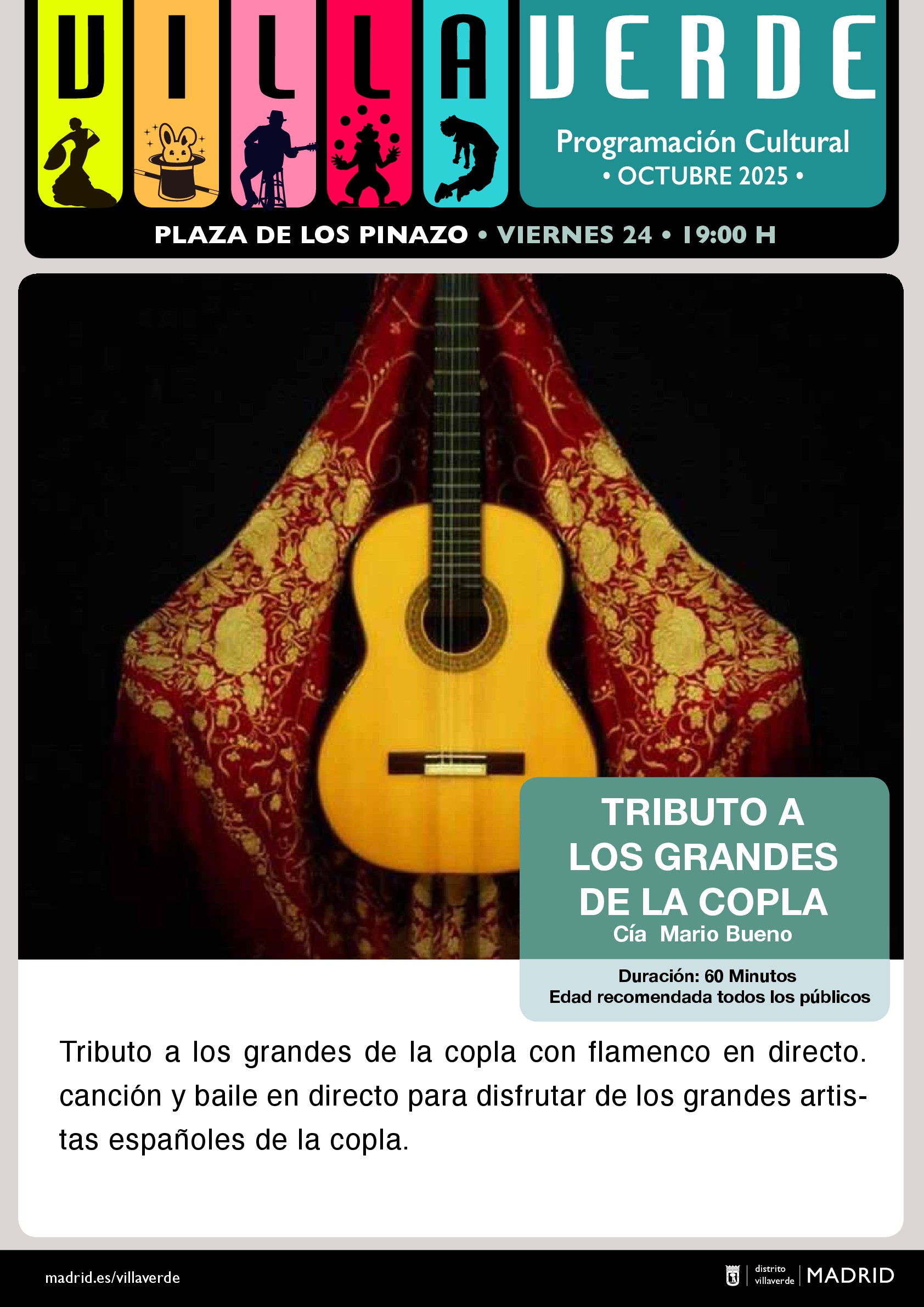 El Centro Cultural San Cristóbal de los Ángeles se convertirá en una fiesta con el espectáculo Tributo a los grandes de la copla, un show con música y baile en directo dedicado a las grandes figuras del género.