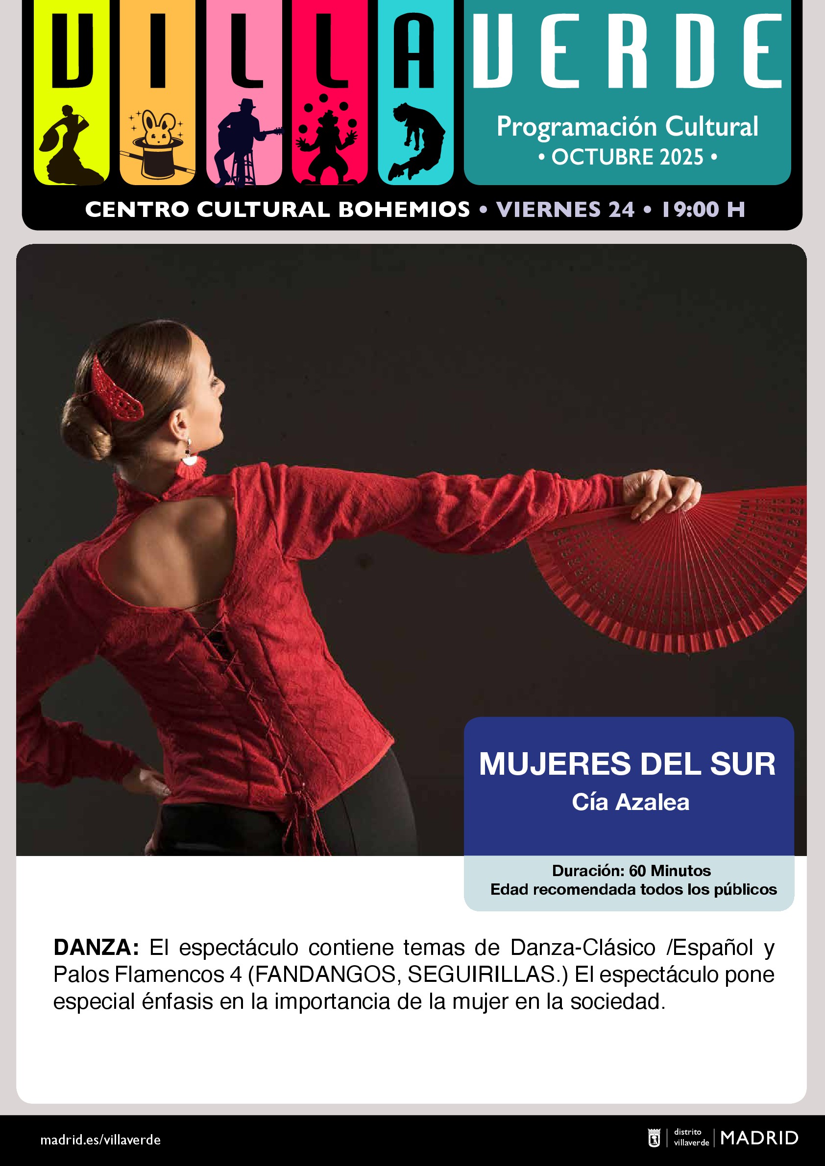 El Centro Cultural Bohemios acogerá el espectáculo de danza Mujeres del Sur, de la compañía Azalea, que pone en valor la fuerza y el papel de la mujer en la sociedad a través del flamenco y la danza española.