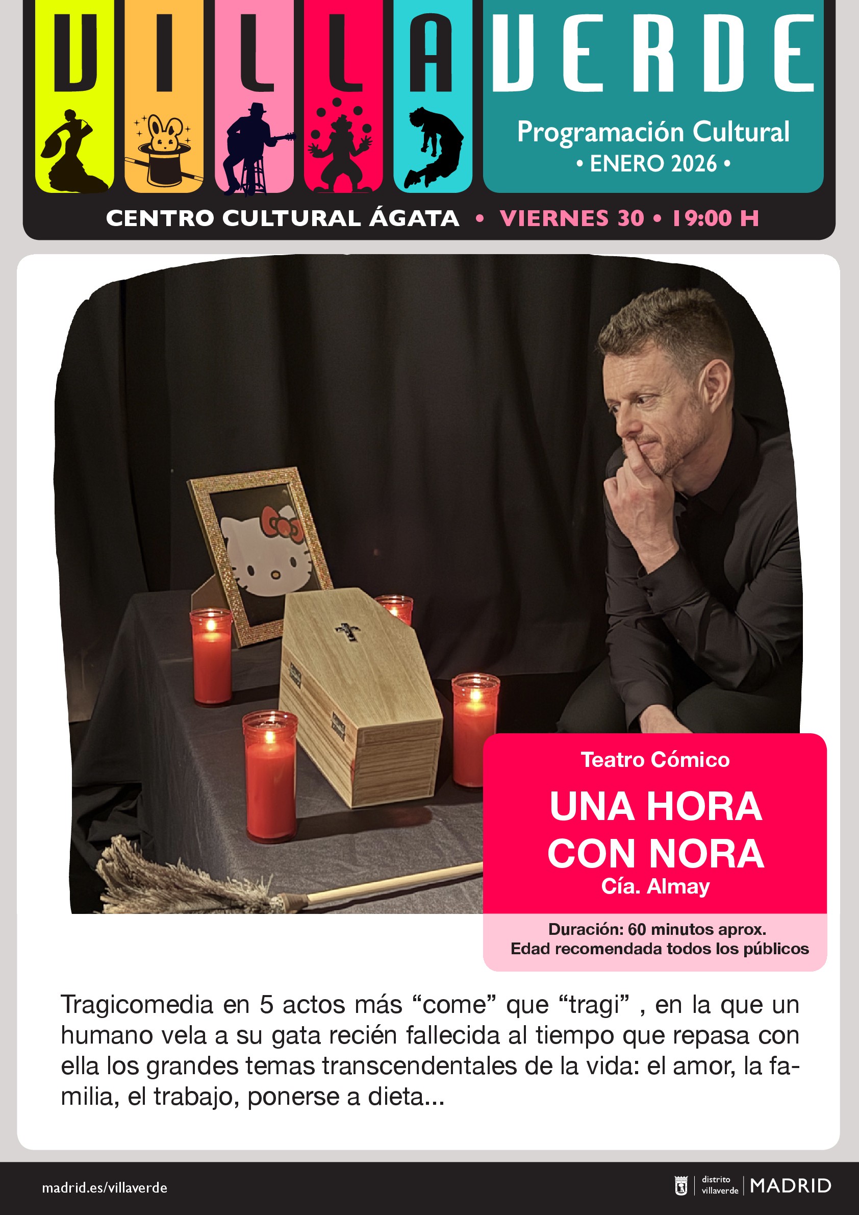 Seguimos con más comedia de la mano de la Compañía Almay, que presenta esta tragicomedia en cinco actos en la que un humano vela a su gata recién fallecida al tiempo que repasa con ella los grandes temas transcendentales de la vida: el amor, la familia, el trabajo, ponerse a dieta.