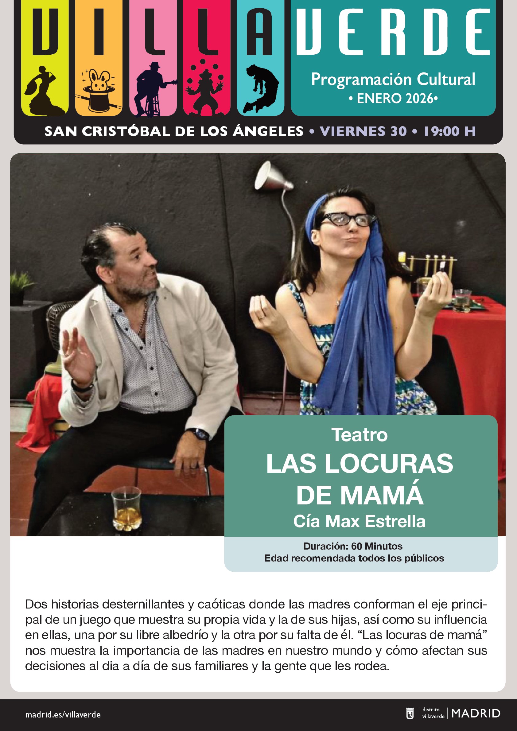 La Compañía de teatro Max Estrella trae al distrito esta comedia que junta dos historias desternillantes y caóticas donde las madres conforman el eje principal de un juego que muestra su propia vida y la de sus hijas, así como su influencia en ellas, una por su libre albedrío y la otra por su falta de él.